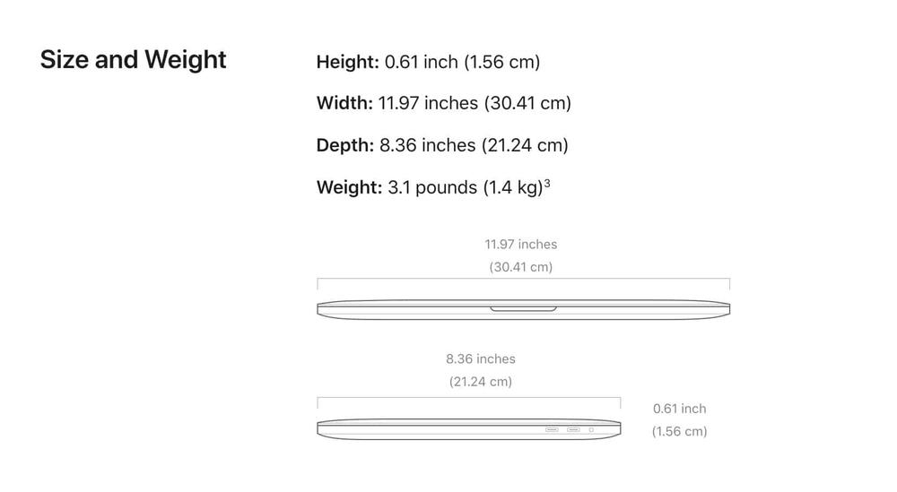 Kích thước chiều dài và chiều rộng lần lược là 30.41cm và 21.24cm, y hệt các đời trước đó.